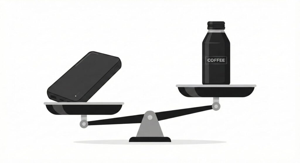 390gという重さはブラックコーヒーのボトル缶と同じくらいですこし重め。