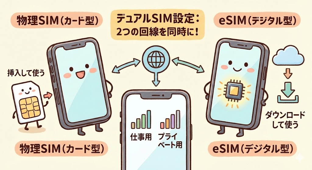そのためデュアルSIM運用の場合は必ず物理SIM回線とeSIM回線が必要になります。